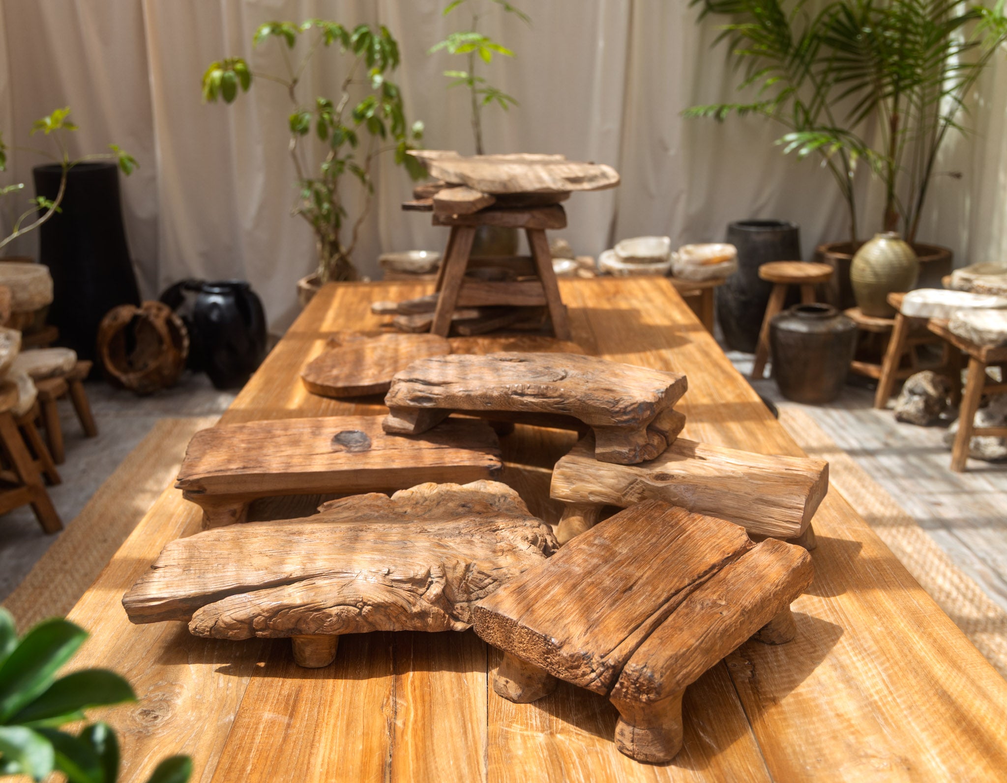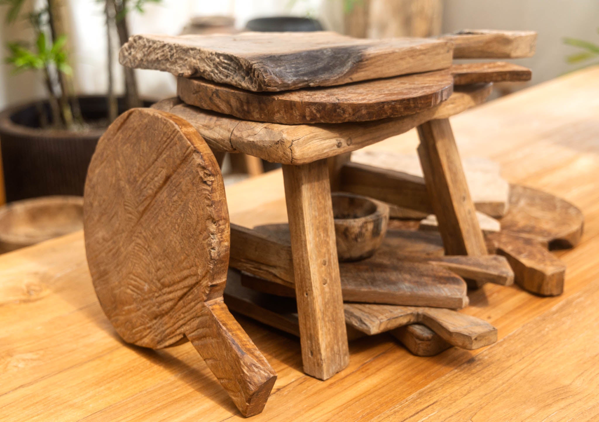 Handcrafted from reclaimed teak, each board shows unique grain, texture, and character.