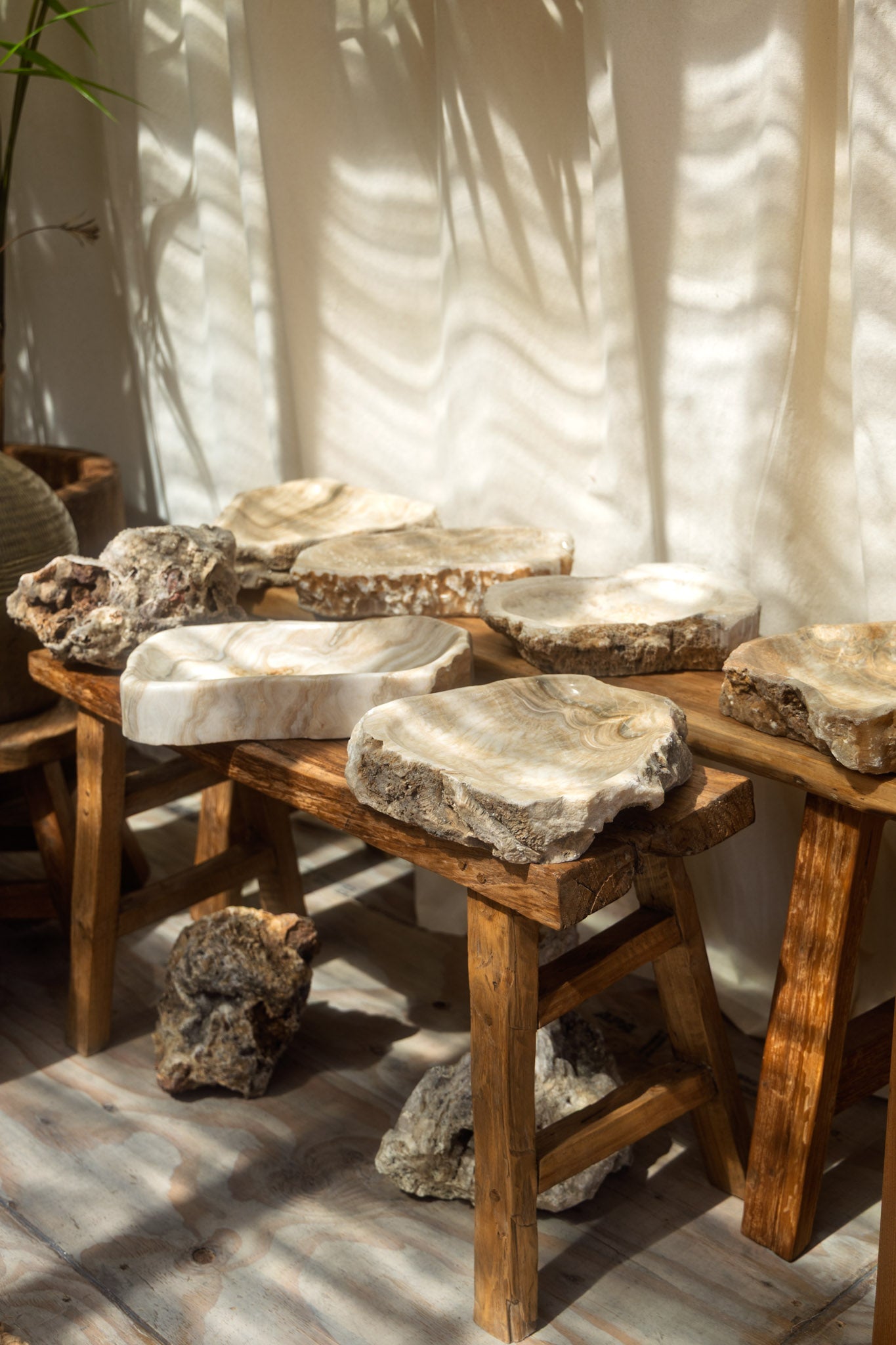 Carved from natural onyx, each dish showcases unique veining and organic shape. Perfect as a catchall, serving piece, or decorative accent.