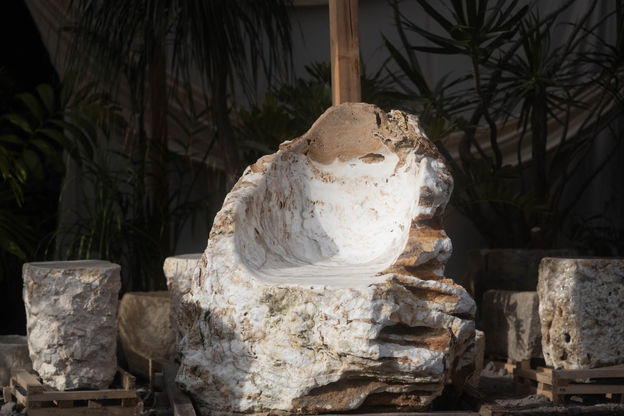 Handcrafted from a single slab of onyx. The interior is polished smooth, while the exterior retains its raw, organic beauty. Onyx may display natural calcification and surface variations, adding to its character. A true statement piece.