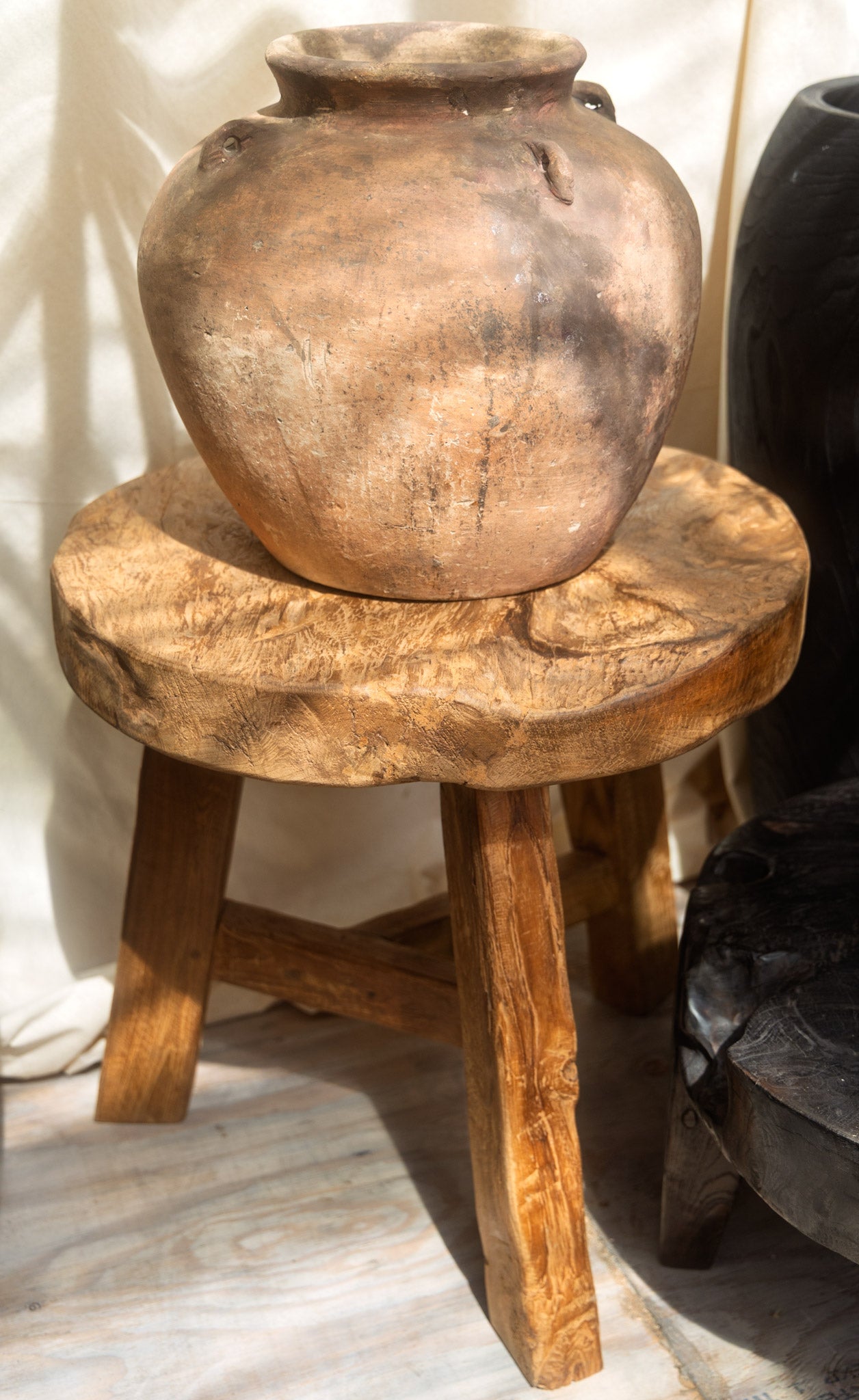 Carved from a solid lychee tree trunk with natural grain and organic edges. Perfect for displaying vases, sculptures, or plants.