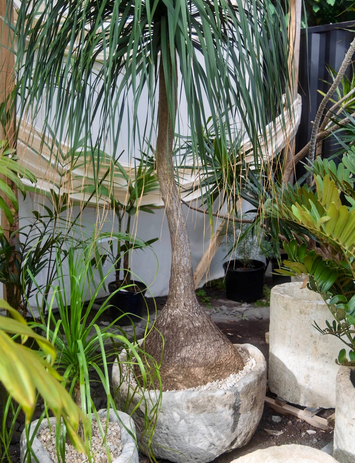 PONYTAIL PALM + VINTAGE LIMESTONE PLANTER